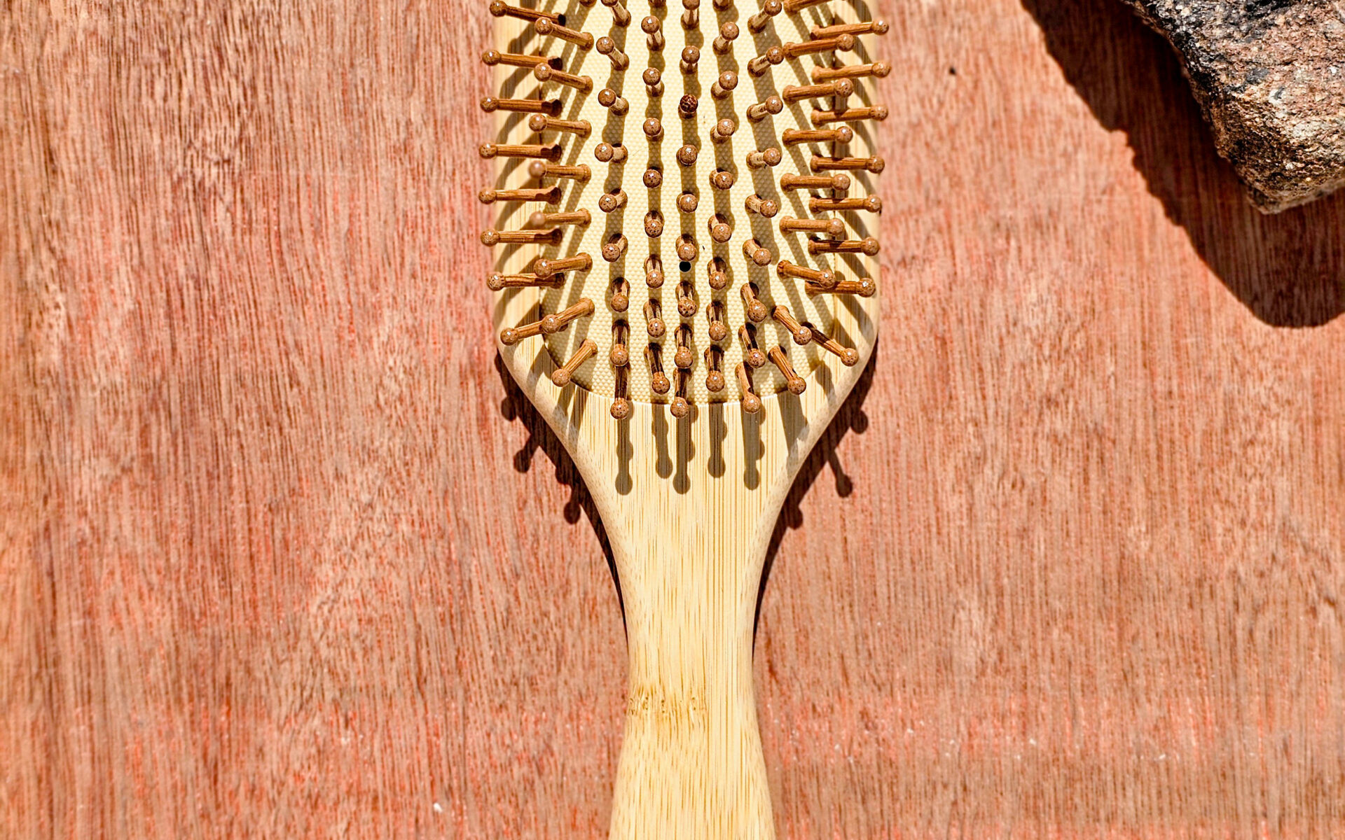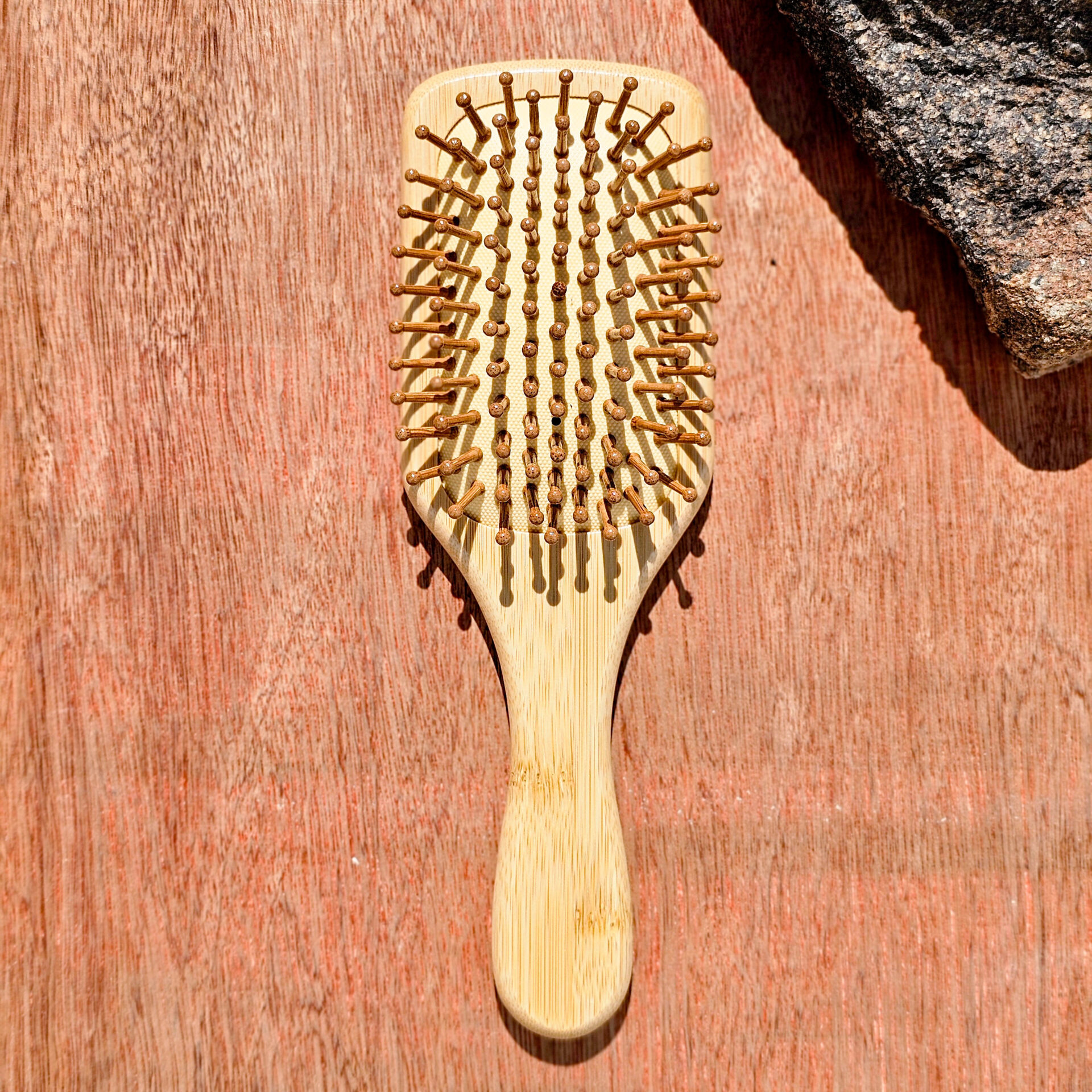 Cepillo de cabello elaborado con mango de bambú, ideal para desenredar suavemente y estimular el cuero cabelludo. Ayuda a distribuir los aceites naturales del cabello, reduciendo el frizz y favoreciendo un cuidado diario más consciente.