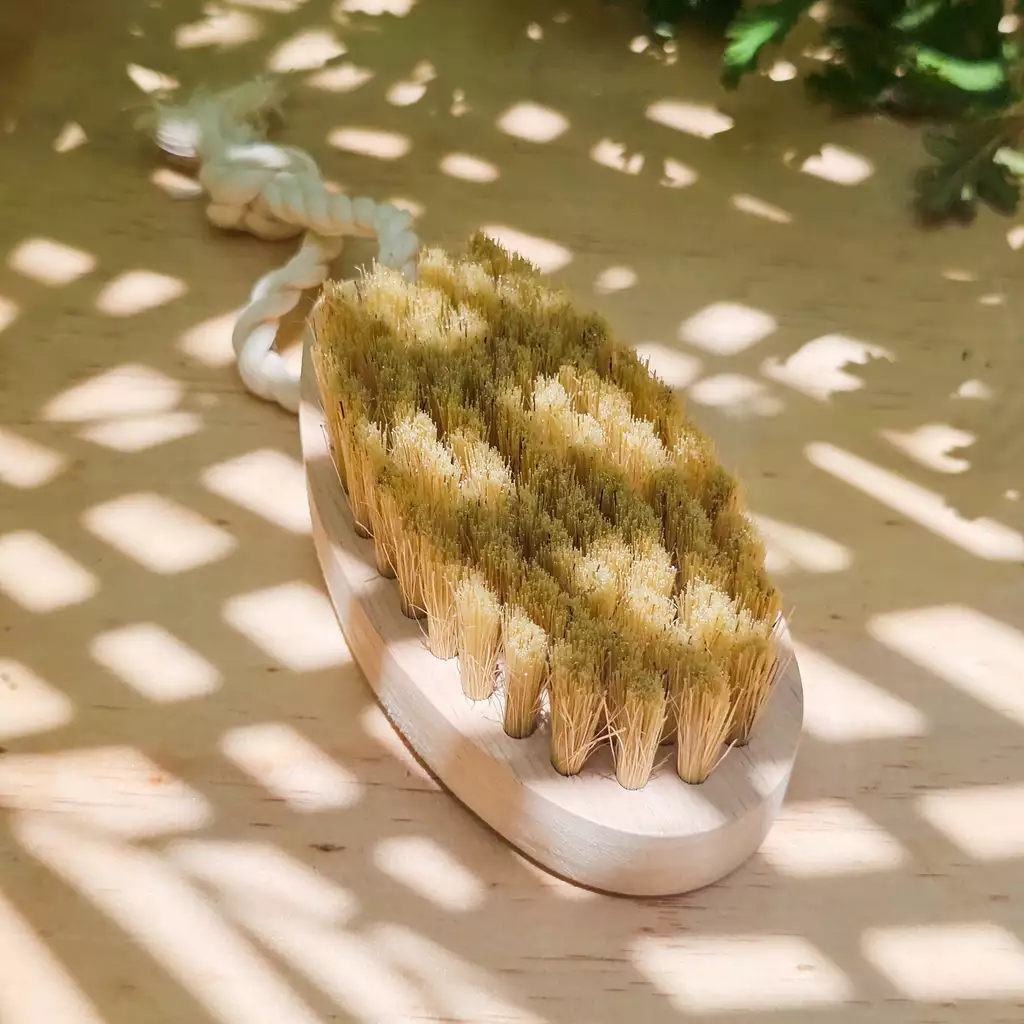 Madera natural y cerdas vegetales suaves.