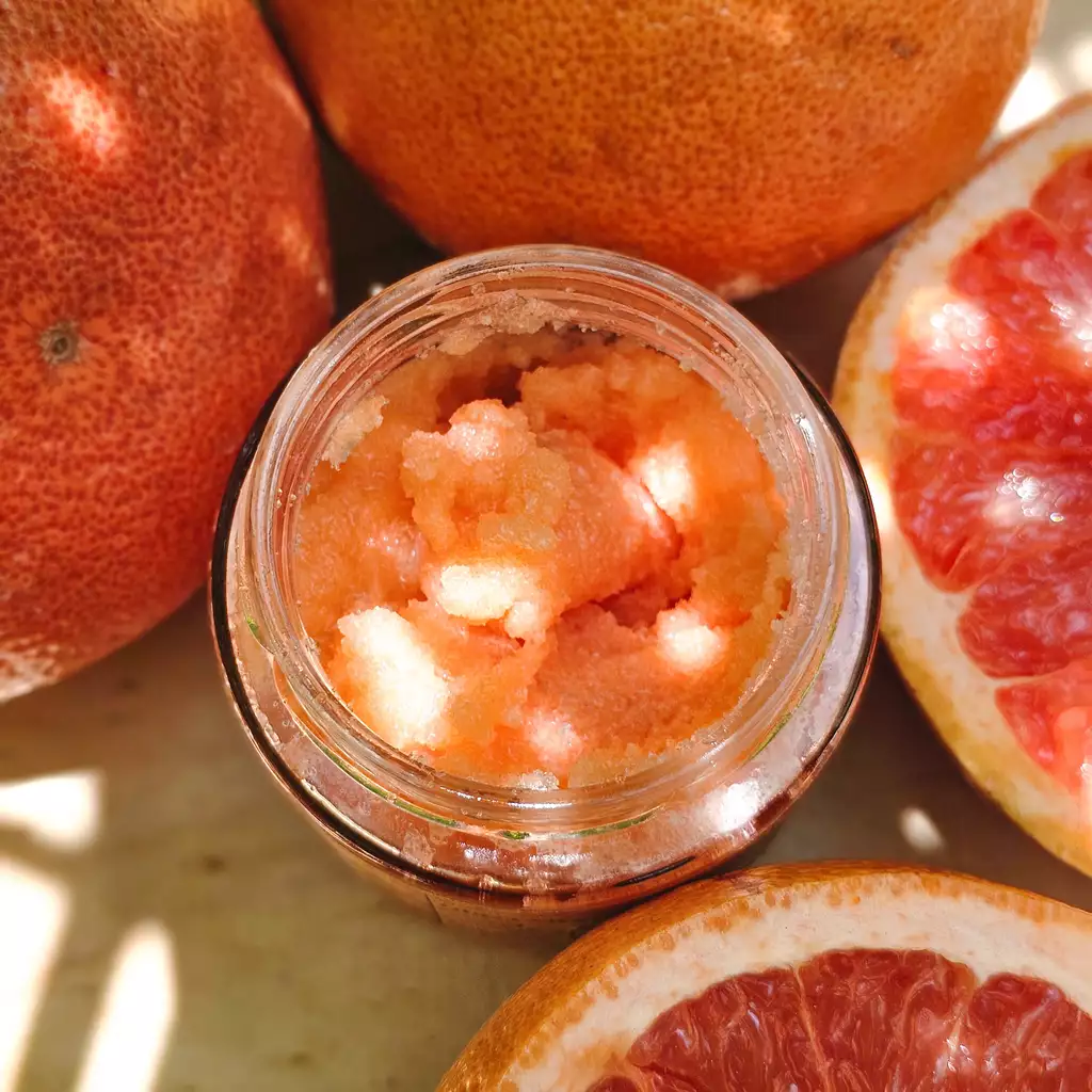 Ligero y energizante, este exfoliante de azúcar remueve células muertas mientras tonifica y refresca con el poder natural del aceite esencial de toronja.